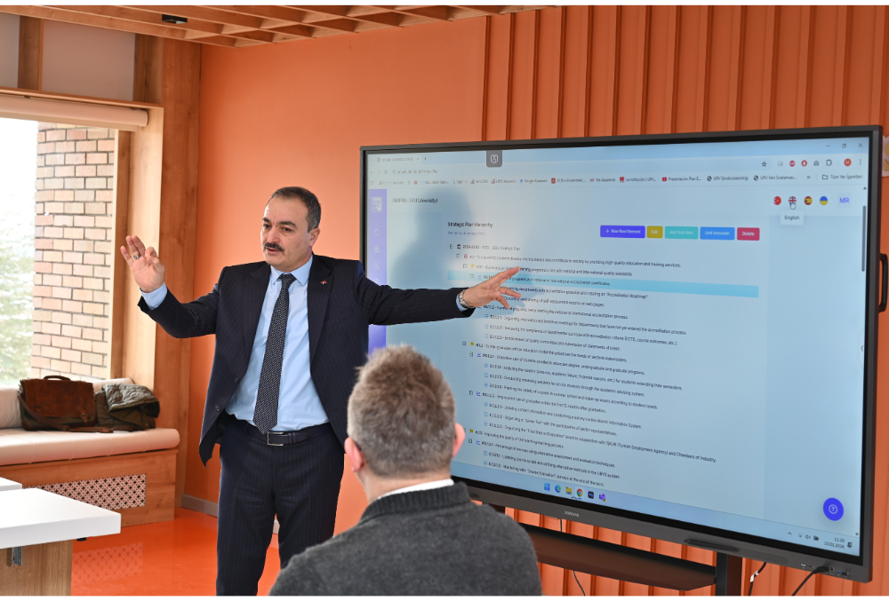 Assist.Prof.Dr. Seyrek provided participants with information about the program, offering a general assessment of the project's purpose, outputs, and activities carried out in 2025. In his speech, he stated that the IMAP4U project aims to address strategic planning, performance evaluation, and resource management in universities through an integrated action and performance model that takes a holistic approach.
