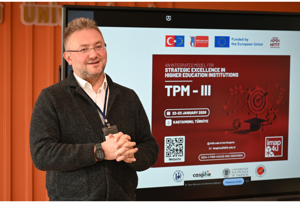 The third Transnational Project Meeting (TPM-III) of the IMAP4U (Integrated Model for Strategic Excellence in Higher Education Institutions) project, coordinated by Hitit University and carried out within the European Union Erasmus+ Program, is being held at Kastamonu University on January 22-23, 2026.