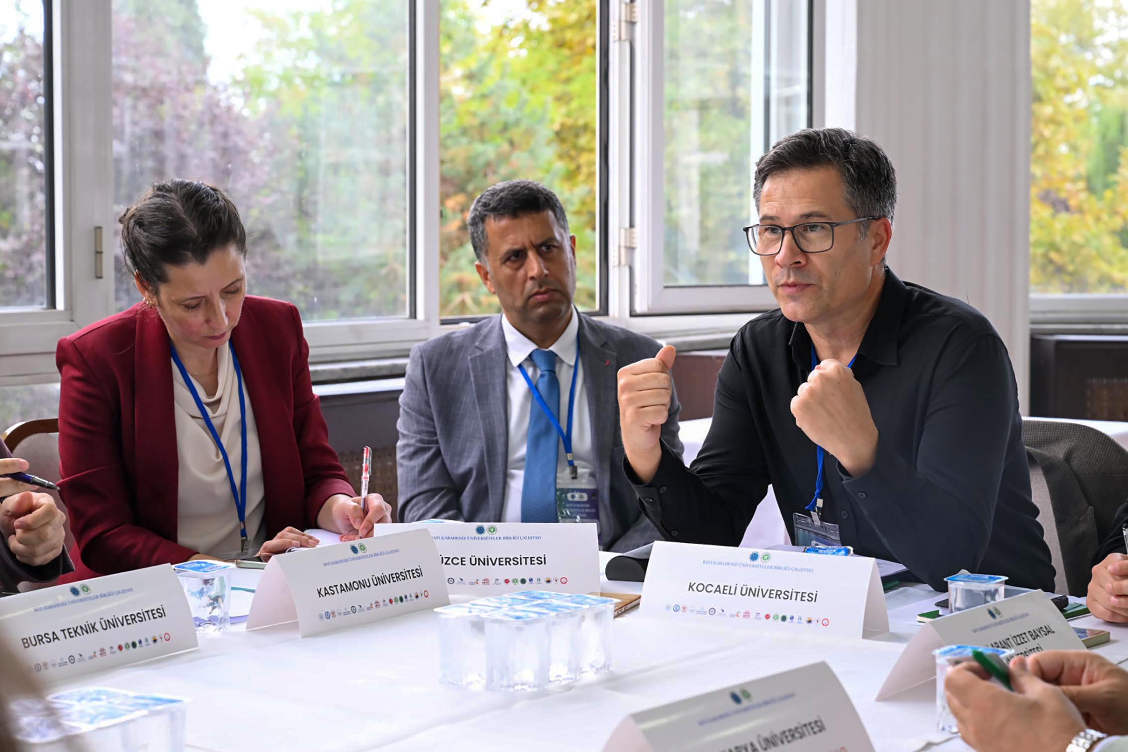 Toplantıda, BKÜB Dönem Başkanı Rektörümüz Prof. Dr. Ahmet Hamdi Topal’ın yanı sıra Bartın Üniversitesi Rektörü Prof. Dr. Ahmet Akkaya, Bilecik Şeyh Edebali Üniversitesi Rektörü Prof. Dr. Zafer Asım Kaplancıklı, Bandırma Onyedi Eylül Üniversitesi Rektörü Prof. Dr. İsmail Boz, Çankırı Karatekin Üniversitesi Rektörü Prof. Dr. Mevlüt Karataş, Düzce Üniversitesi Rektörü Prof. Dr. Nedim Sözbir, Sinop Üniversitesi Rektörü Prof. Dr. Şakir Taşdemir, Kocaeli Sağlık ve Teknoloji Üniversitesi Rektörü Prof. Dr. Muzaffer Elmas, Sakarya Uygulamalı Bilimler Üniversitesi Rektörü Prof. Dr. Mehmet Sarıbıyık, Zonguldak Bülent Ecevit Üniversitesi Rektörü Prof. Dr. İsmail Hakkı Özölçer, Yalova Üniversitesi Rektörü Prof. Dr. Mehmet Bahçekapılı ve Bolu Abant İzzet Baysal Üniversitesi Rektör Yardımcısı Prof. Dr. Samettin Gündüz yer aldı. Toplantı sonrasında program, Bilimpark ve Kariyer ile İnovasyon Merkezi ziyaretiyle devam etti.