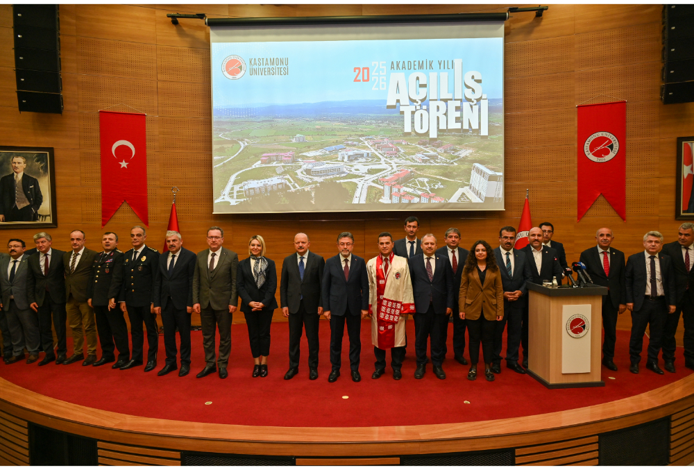 Kastamonu Üniversitesi 2025-2026 Akademik Yılı Açılış Töreni, Tarım ve Orman Bakanı İbrahim Yumaklı’nın iştirakleri ve yoğun bir katılımla Merkez Kütüphane Sezai Karakoç Salonu’nda gerçekleştirildi.