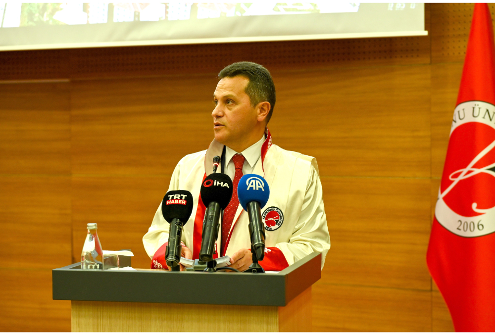 2024 yılında Türkiye Kalite Derneği tarafından “İlham Veren Kamu Yönetimi Proje Ödülleri’nde” birincilik ödülü alan üniversitenin kalite ve akreditasyon çalışmalarına da değinen Rektörümüz, 2025 yılı itibarıyla akredite program sayısının 14’e yükseldiğini, engelsiz kampüs çalışmalarıyla YÖK Engelsiz Üniversite Ödülleri’nde 38 bayrakla Türkiye birincisi olduklarını, ayrıca üniversitelerde sağlıklı yaşamı ve spor kültürünü teşvik etmek amacıyla yürütülen proje kapsamında üniversitemizin “Spor Dostu Kampüs” unvanını kazandığını belirtti.