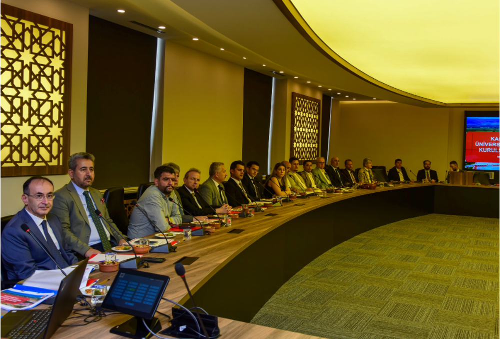 Toplantıda; eğitim-öğretim, araştırma-geliştirme, kalite ve kurumsallaşma, ihtisaslaşma, sosyal sorumluluk ve şehir-üniversite iş birliği gibi ana başlıklar etraflıca değerlendirildi. Rektörümüz, 2025–2029 Stratejik Planı doğrultusunda, bölgesel kalkınmayı destekleyen projelerle Üniversitemizin lider bir rol üstlendiğini ifade etti. Kastamonu Üniversitesi’nin araştırma ve patent üretiminde Türkiye’nin önde gelen üniversiteleri arasında yer aldığına dikkat çeken Rektörümüz, THE, QS ve URAP gibi uluslararası sıralamalarda her yıl üst basamaklara yükseldiklerini, çevre dostu kampüs çalışmaları ve öğrenci odaklı uygulamalarla Üniversitemizin bir yaşam merkezi haline geldiğini belirtti.