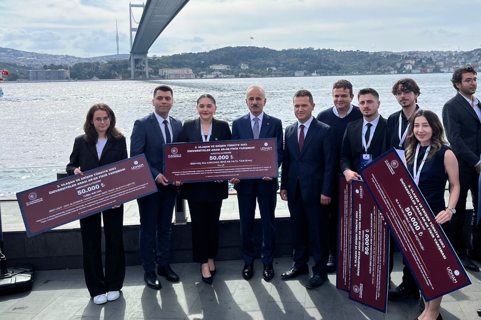 Beşiktaş KGM Ortaköy Sosyal Tesislerinde 3'üncü 'Ulaşan ve Erişen Türkiye 2053 Üniversiteler Arası AR-GE Fikir Yarışması' Ödül Töreni gerçekleştirildi. Törene, Ulaştırma ve Altyapı Bakanı Abdulkadir Uraloğlu, İstanbul Valisi Davut Gül, Bilgi Teknolojileri Genel Müdürü Muhammed Selami Yazıcı, üniversite rektörleri ve öğrenciler katıldı.