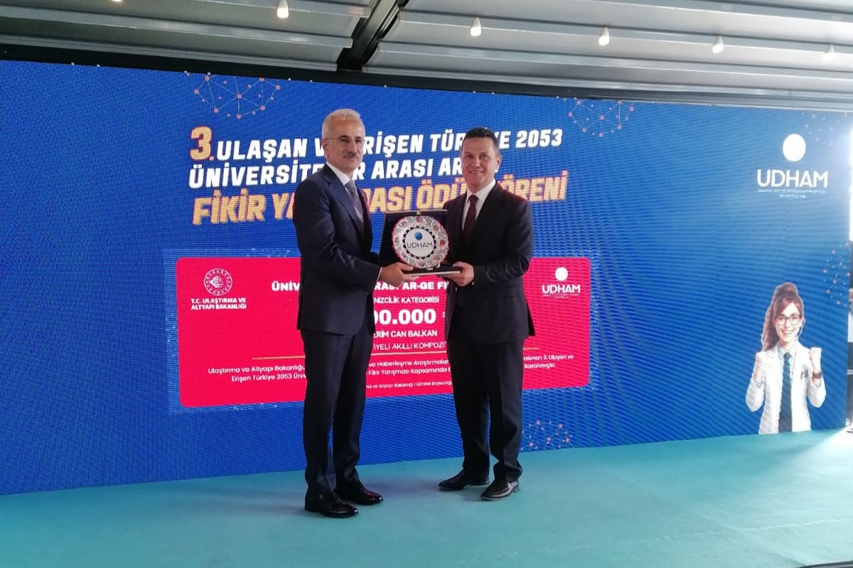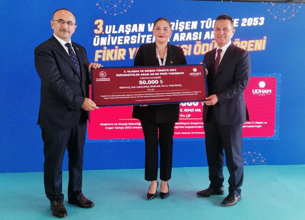 Üniversitemiz öğrencileri yarışmada bir üçüncülük, üç mansiyon ve Ar-Ge Teşvik Ödülü kazanarak önemli bir başarıya imza attı. Ödüller, denizyolu, karayolu ve haberleşme kategorilerinde verildi. Öğrencilerimiz, törene Rektörümüz Prof. Dr. Ahmet Hamdi Topal ile birlikte katılarak Üniversitemizi temsil etti.