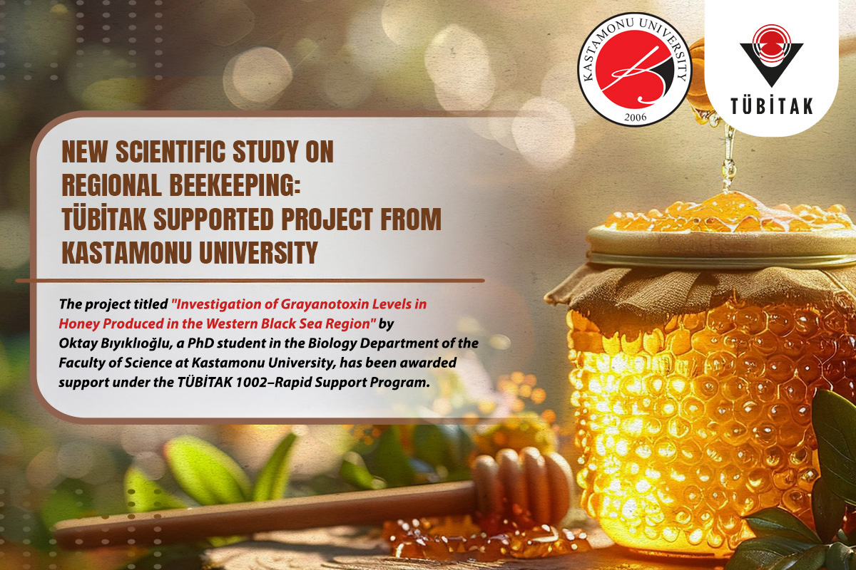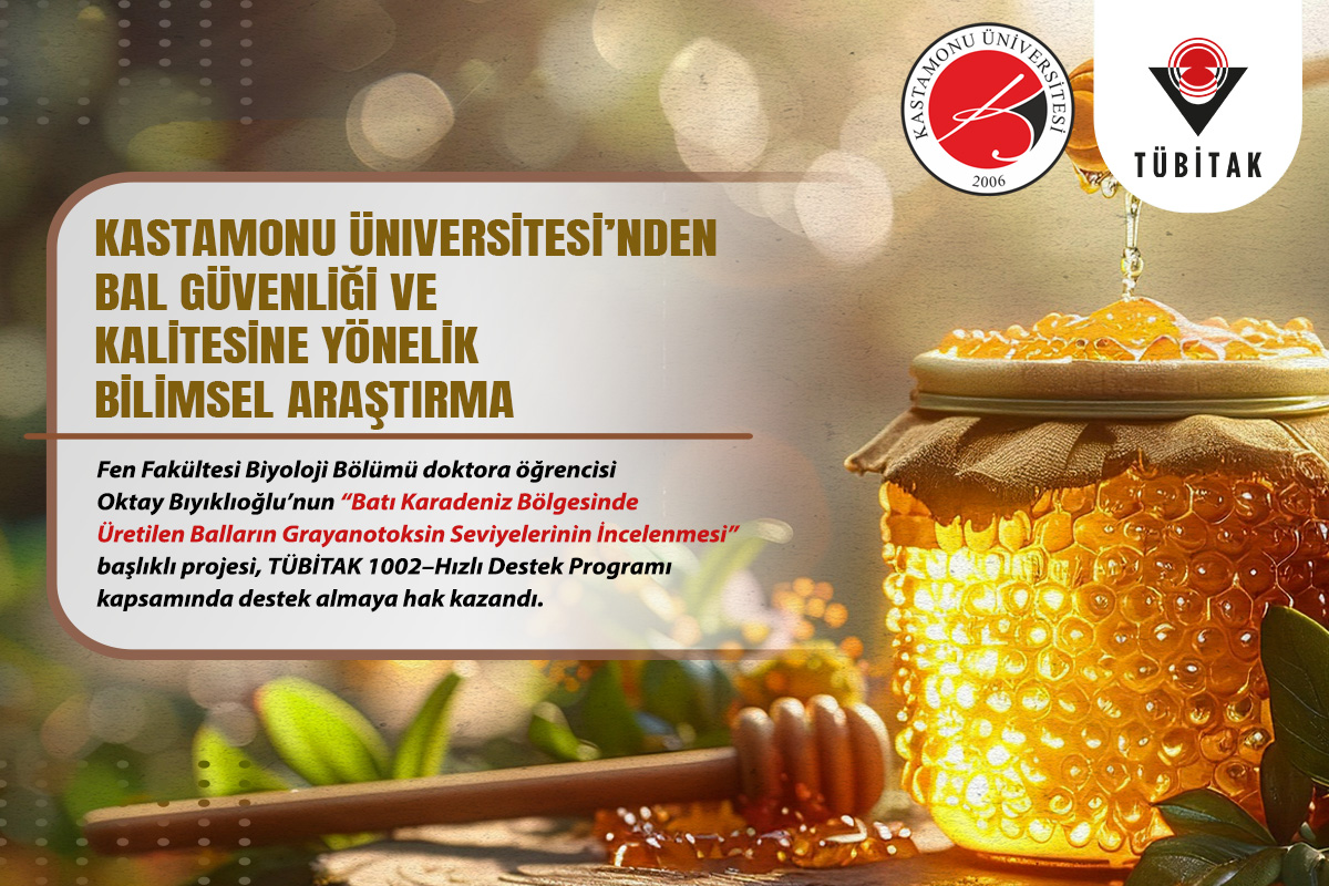 Kastamonu Üniversitesi Fen Fakültesi Biyoloji Bölümü doktora öğrencisi Oktay Bıyıklıoğlu’nun "Batı Karadeniz Bölgesinde Üretilen Balların Grayanotoksin Seviyelerinin İncelenmesi" başlıklı projesi, TÜBİTAK 1002–Hızlı Destek Programı kapsamında destek almaya hak kazandı. Projesiyle Bıyıklıoğlu, bölgenin başlıca tarımsal ürünlerinden olan balın güvenliği ve kalitesine dair bilimsel veriler üretmeyi amaçlıyor.