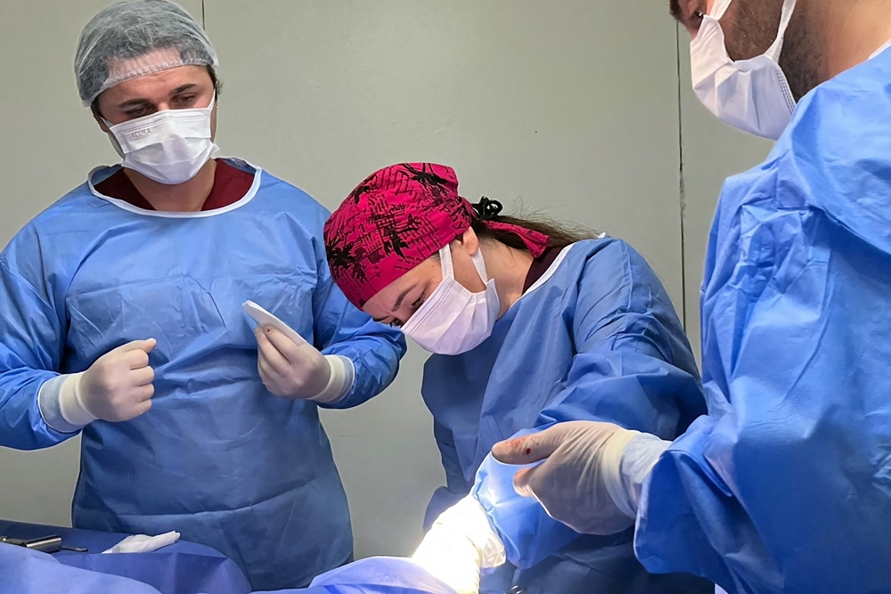 Veteriner Fakültesi Cerrahi Anabilim Dalı öğretim üyeleri tarafından gerçekleştirilen klinik ve radyografik muayeneler neticesinde buzağının bacağındaki enfeksiyonun ilerlemiş olduğu görüldü. Tedavi sürecinin ilk aşamasında enfeksiyonu kontrol altına almak amacıyla medikal tedavi uygulandı. Bu aşamada buzağının genel sağlık durumu yakından takip edilerek gerekli ilaç ve destek tedavileri sağlandı.