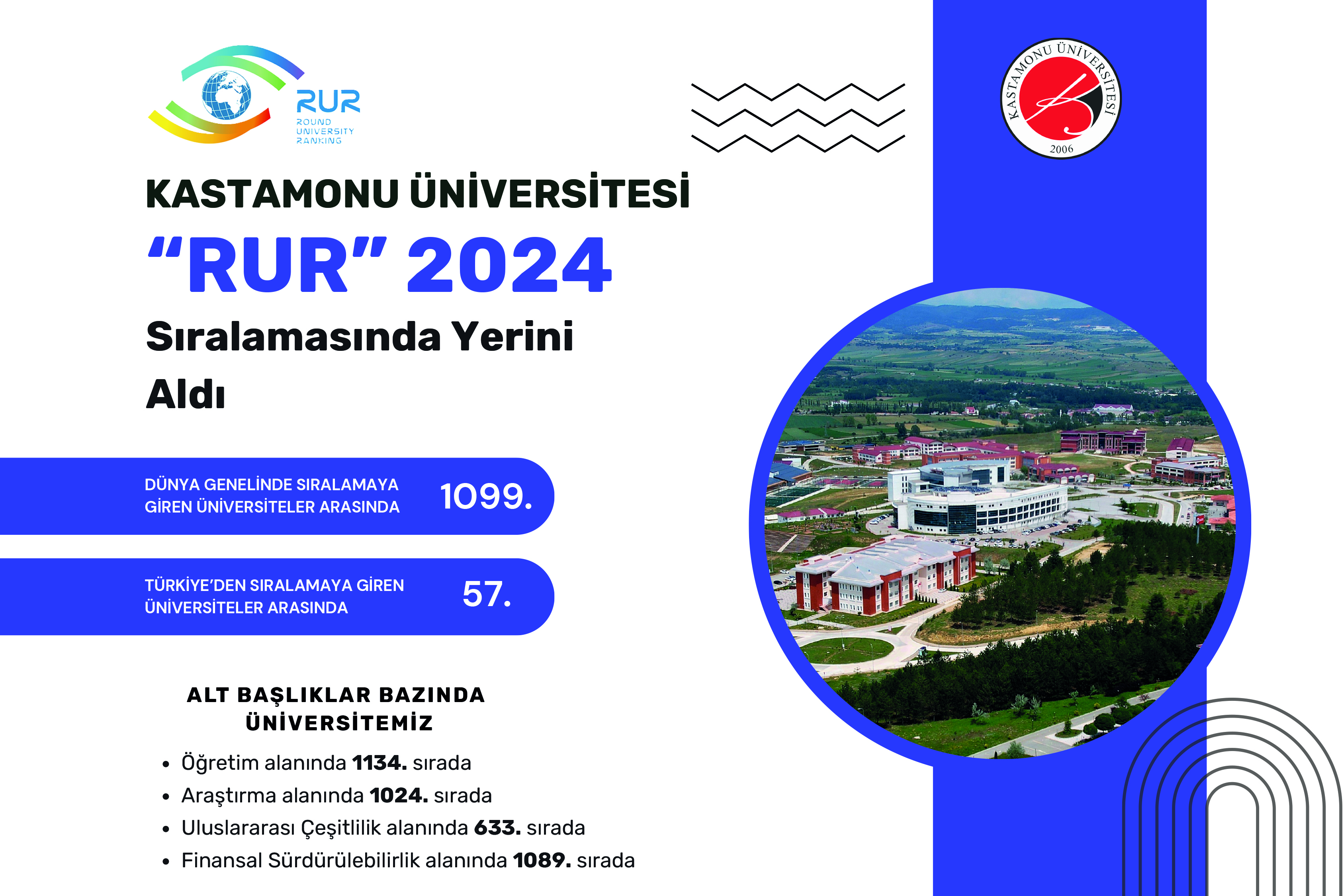 Kastamonu Üniversitesi, 2024 yılı Round University Ranking (RUR) sonuçlarına göre uluslararası sıralamada yer alarak küresel ölçekteki akademik rekabette varlık göstermeye devam etti.