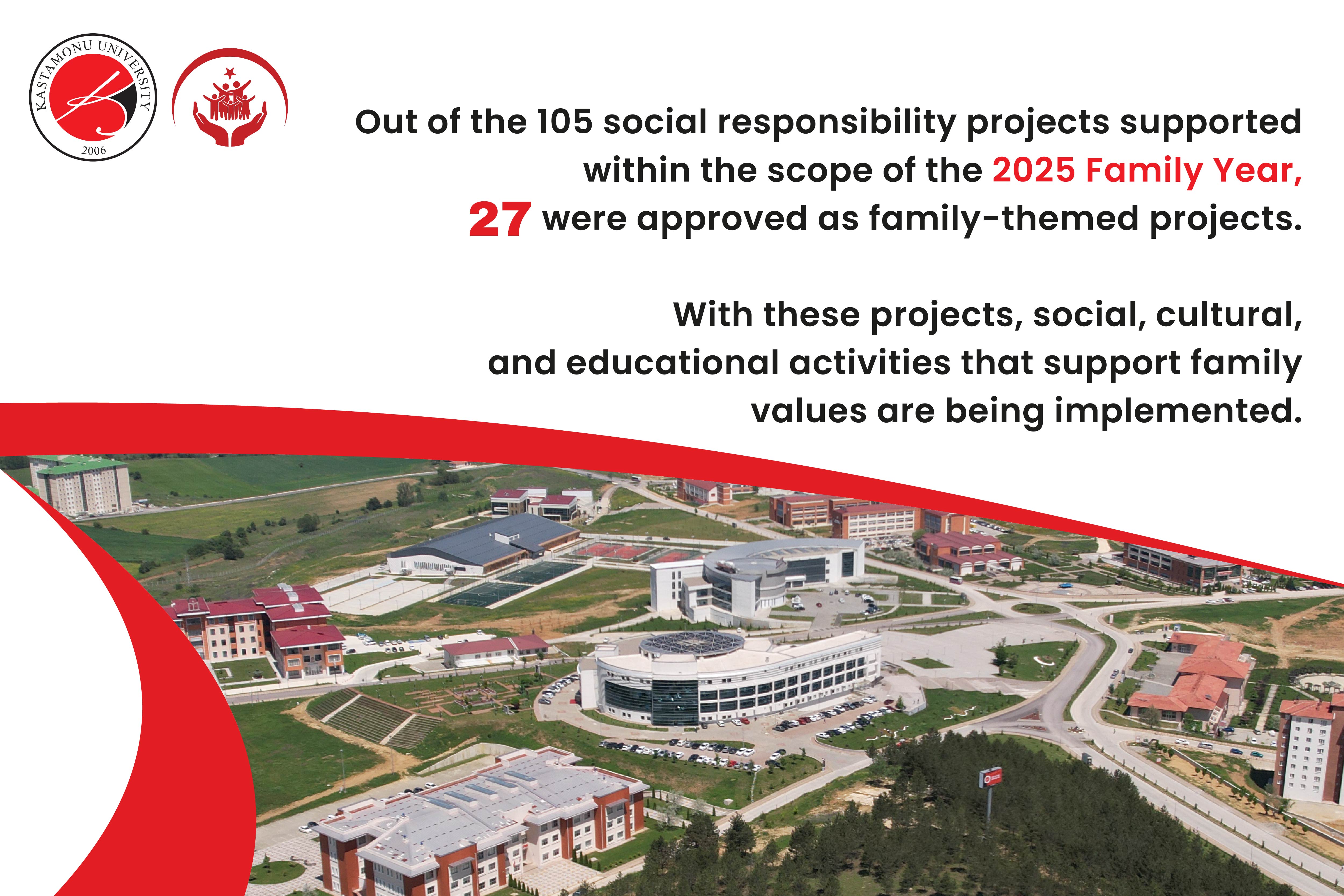 Kastamonu Üniversitesi Sosyal Sorumluluk Projeleri Ofisi (Sosyal Ofis), 2025 yılının “Aile Yılı” ilan edilmesi kapsamında Nisan ayında yapılan proje başvuruları arasından 27 aile temelli projeyi desteklemeye değer buldu.