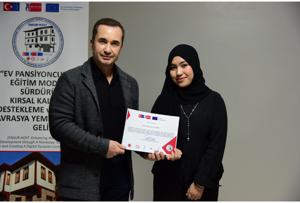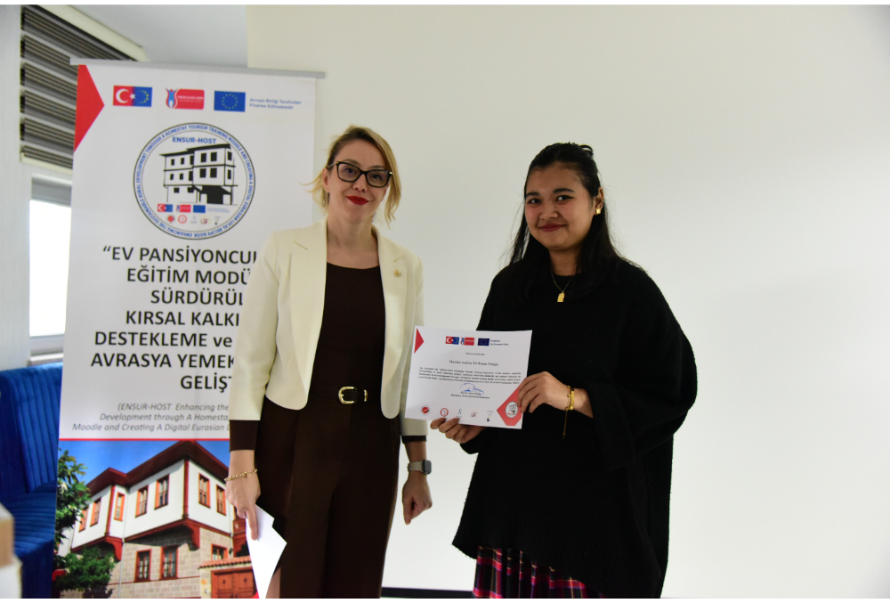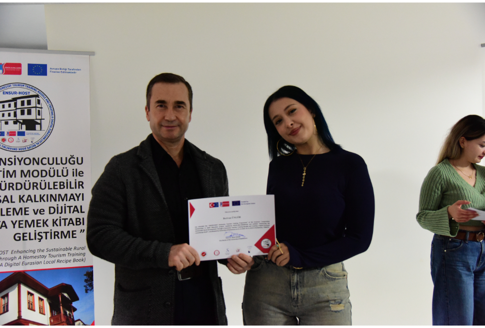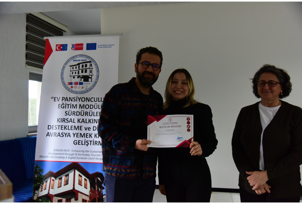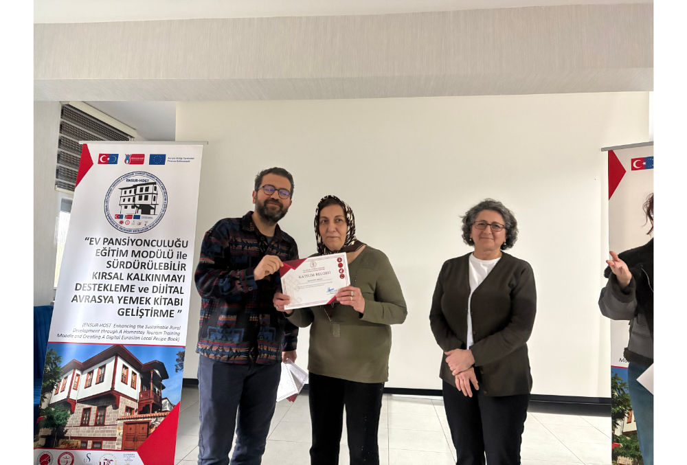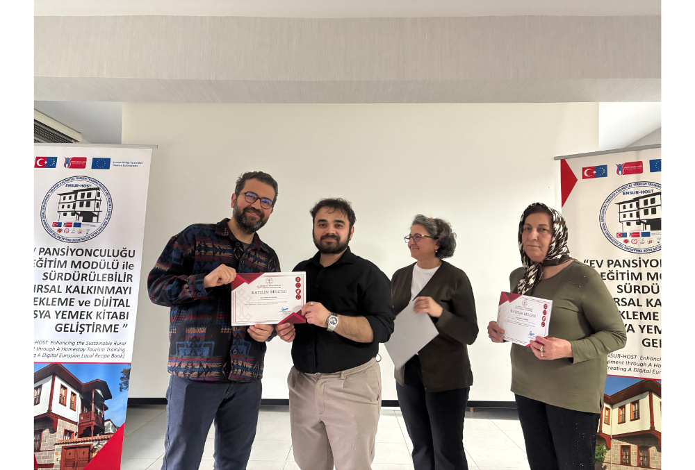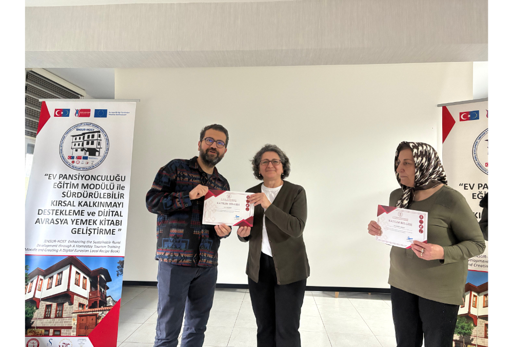 Üniversitemizin yanı sıra İtalya’dan Benevento Sannio Üniversitesi, İspanya’dan Sevilla Üniversitesi ve Norveç’ten Stavanger Üniversitesi’nin ortak olduğu projede 1000 kursiyer Çevrimiçi Ev Pansiyonculuğu eğitim modülünde eğitime katılarak sertifika aldı. Ayrıca proje kapsamında 80 yöresel yemek tarifi sisteme kazandırıldı.