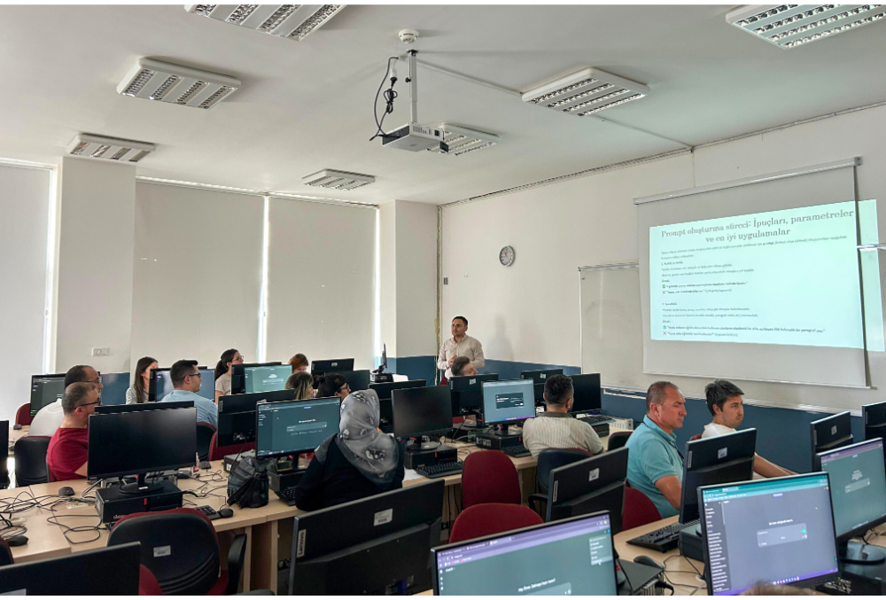Üniversitemiz Yapay Zekâ Çalışmaları Koordinatörlüğü tarafından planlanan eğitim programı, 1-9 Temmuz 2025 tarihleri arasında Mühendislik ve Mimarlık Fakültesi Bilgisayar Laboratuvarı’nda gerçekleştirildi.