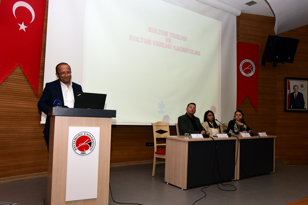 Doç. Dr. Aktaş’tan sonra panelde konuşan Kastamonu Müze Müdürü Erol Kale, “Kültür Varlığı Kaçakçılığı ve Kaçak Kazılar” konusunda katılımcıları bilgilendirdi. Müdür Kale, kültür varlığının tanımını yaparak, ülkemizin medeniyetler beşiği olduğunu bunun da kültür varlıkları açısından zenginlik kattığını ifade etti.