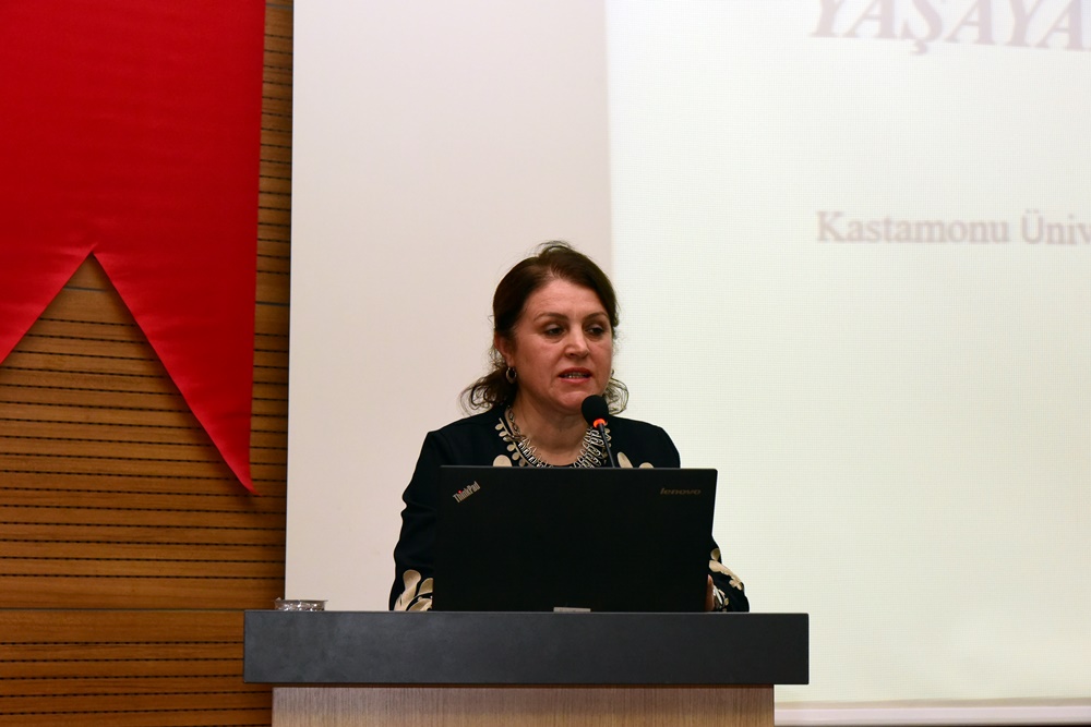 Prof. Dr. Gülten Küçükbasmacı ise “Yaşayan Müze ve Kastamonu” başlıklı sunumunu gerçekleştirdi. Son yıllarda müzecilik anlayışının değiştiğini artık somut olmayan kültürel miras öğelerinin de müzecilik alanına girdiğini söyleyerek yaşayan müze anlayışı, kültürel mirası halkla doğrudan buluşturduğunu dile getirerek Kastamonu’da olduğu gibi ülkemizde pek çok şehirde de yaşayan müze açıldığını ifade etti.