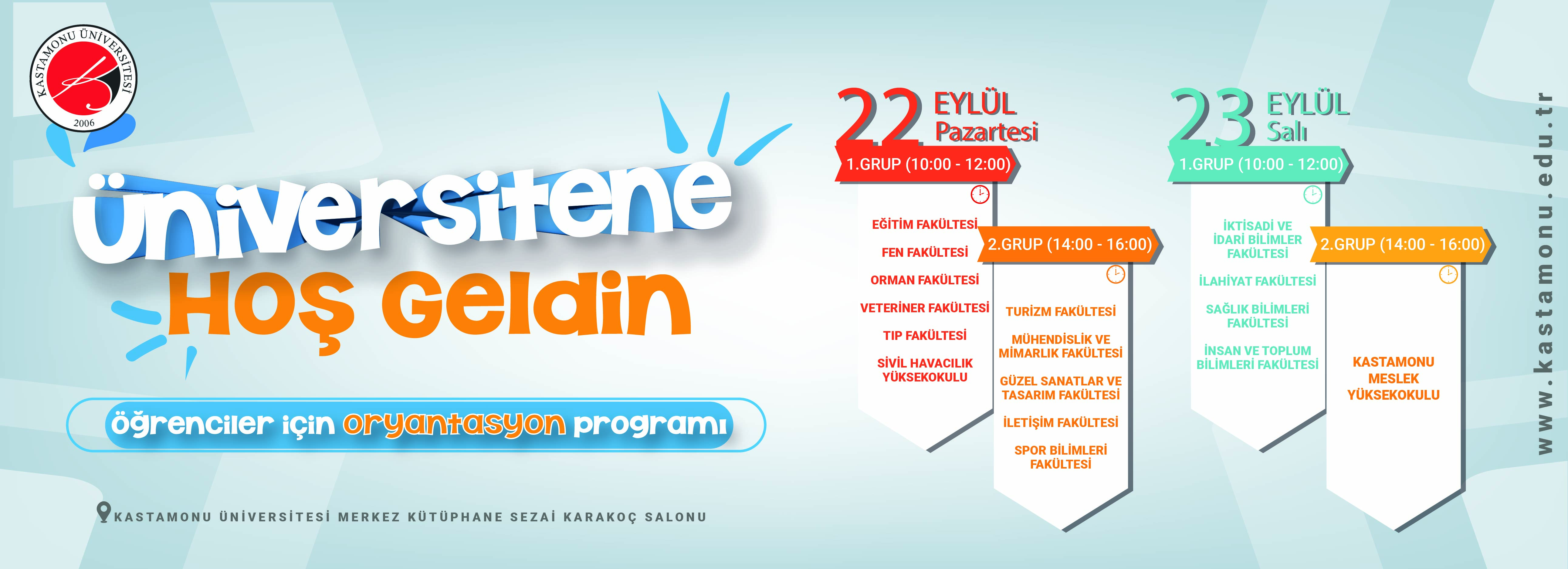 Kastamonu Üniversitesi, 2025-2026 eğitim-öğretim yılına yeni başlayan öğrencilerini “Oryantasyon Programı” ile karşılamaya hazırlanıyor. Üniversitemiz Kariyer Geliştirme Uygulama ve Araştırma Merkezi koordinasyonunda düzenlenen program, öğrencilerin üniversite yaşamına hızlı uyum sağlamalarını ve akademik hayata bilinçli bir şekilde adım atmalarını hedefliyor.