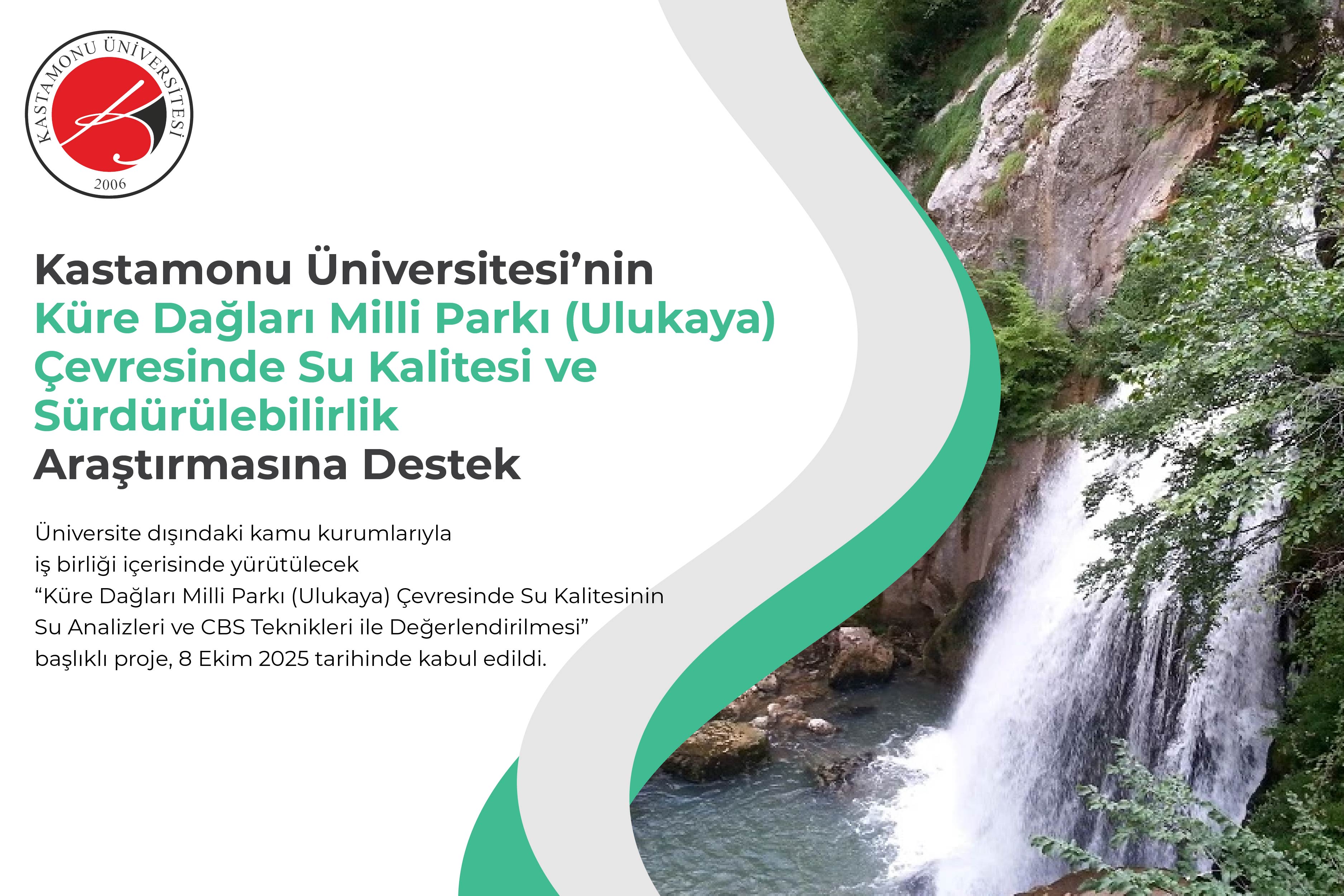 Kastamonu Üniversitesi akademisyenleri, bölgenin su kaynaklarının korunmasına ve sürdürülebilir çevre yönetimine katkı sağlayacak yeni bir bilimsel araştırma projesine imza attı. Üniversite dışındaki kamu kurumlarıyla iş birliği içerisinde yürütülecek “Küre Dağları Milli Parkı (Ulukaya) Çevresinde Su Kalitesinin Su Analizleri ve CBS Teknikleri ile Değerlendirilmesi” başlıklı proje, 8 Ekim 2025 tarihinde kabul edildi.