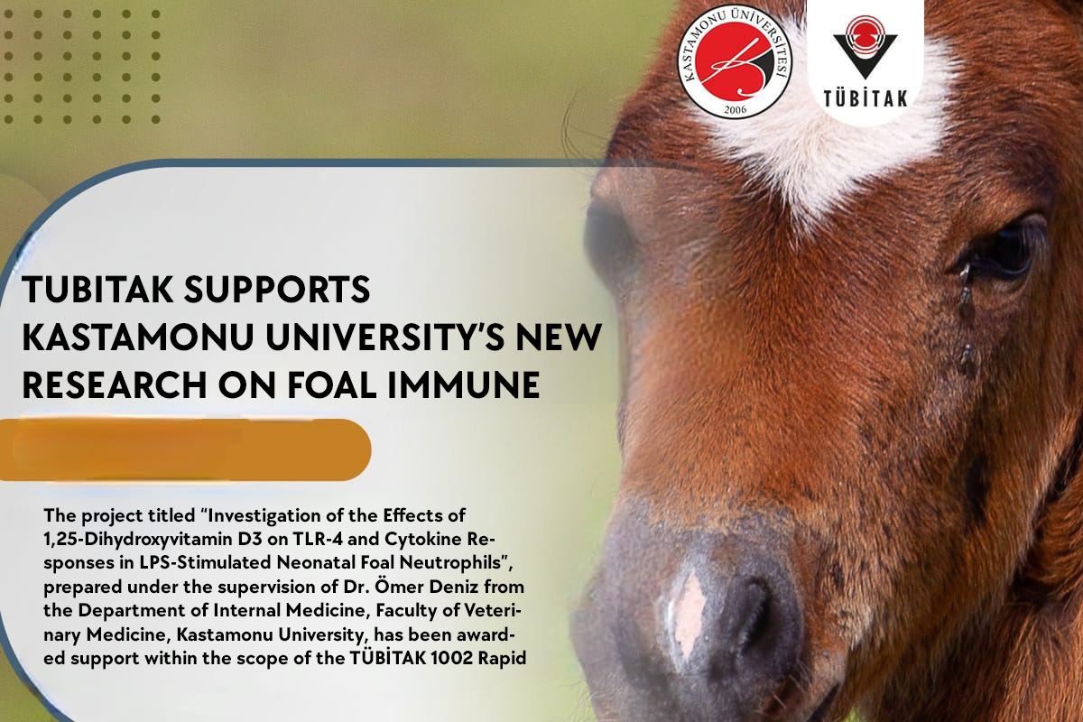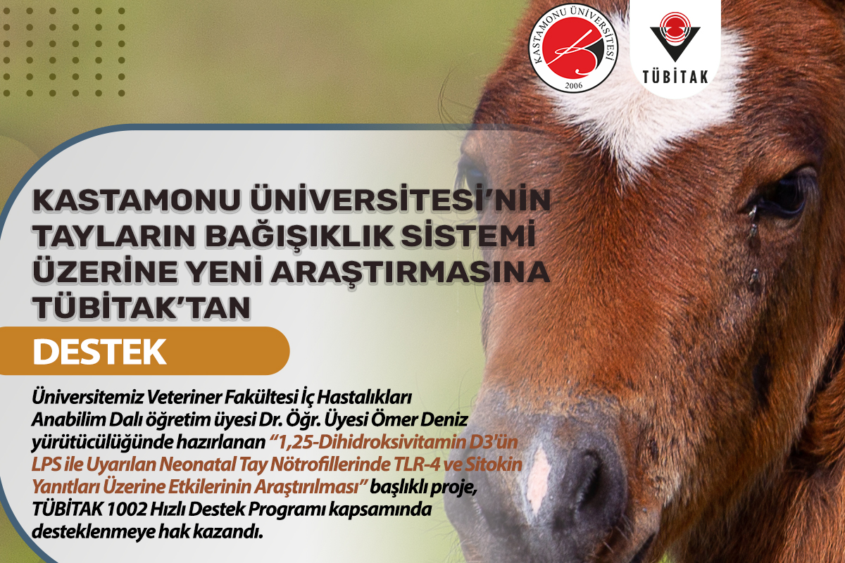 Kastamonu Üniversitesi Veteriner Fakültesi İç Hastalıkları Anabilim Dalı öğretim üyesi Dr. Öğr. Üyesi Ömer Deniz yürütücülüğünde hazırlanan “1,25-Dihidroksivitamin D3'ün LPS ile Uyarılan Neonatal Tay Nötrofillerinde TLR-4 ve Sitokin Yanıtları Üzerine Etkilerinin Araştırılması” adlı proje, TÜBİTAK 1002 Hızlı Destek Programı kapsamında desteklenmeye hak kazandı.