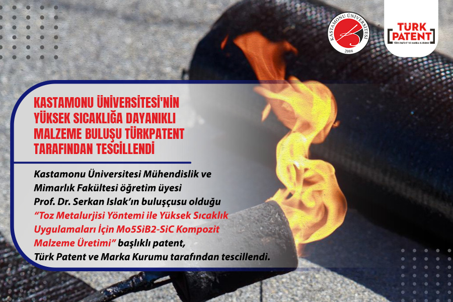Kastamonu Üniversitesi Mühendislik ve Mimarlık Fakültesi öğretim üyesi Prof. Dr. Serkan Islak’ın buluşçusu olduğu “Toz Metalurjisi Yöntemi ile Yüksek Sıcaklık Uygulamaları İçin Mo5SiB2-SiC Kompozit Malzeme Üretimi” başlıklı patent, Türk Patent ve Marka Kurumu tarafından tescillendi.