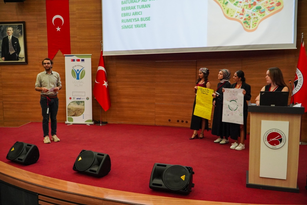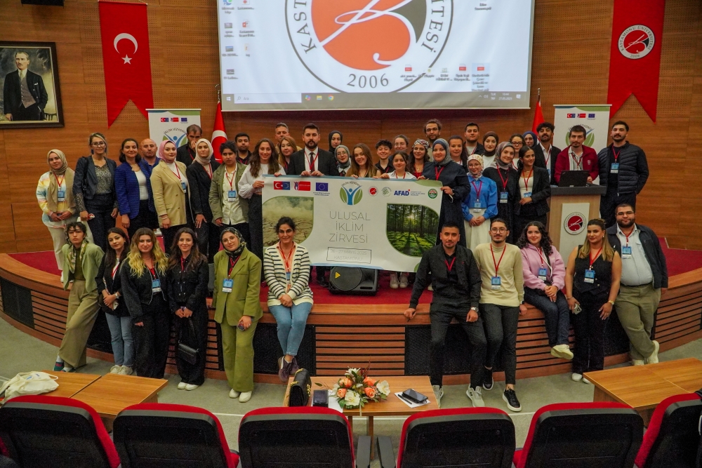 Avrupa Birliği tarafından finanse edilen ve Türkiye Ulusal Ajansı tarafından Erasmus+ Gençlik Katılımı Faaliyeti (KA154-YOU) kapsamında desteklenen “Ulusal İklim Vizyonu Zirvesi”, 27 Mayıs 2025 tarihinde Kastamonu Üniversitesi Merkez Kütüphane Sezai Karakoç Salonu’nda gerçekleştirildi. Etkinlik; Üniversitemiz, Kastamonu Teknokent, Kastamonu İl Afet ve Acil Durum Müdürlüğü (AFAD) ve Cide Yerel Eylem Grubu’nun iş birliğiyle düzenlendi.