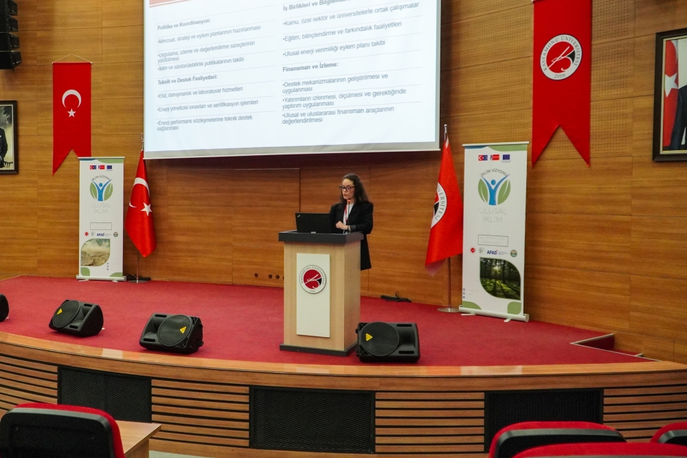 Güngör’ün ardından kürsüye gelen Rektör Yardımcımız Prof. Dr. Ömer Küçük, iklim değişikliğinin yalnızca çevresel değil, aynı zamanda sosyal ve ekonomik etkilerinin de giderek derinleştiğine dikkat çekti. Prof. Dr. Küçük, “Bu projeyle de gençlerin iklim politikalarına aktif katılımını destekleyerek, sürdürülebilir bir gelecek için sadece bilgi değil, aynı zamanda sorumluluk üreten bir üniversite olma iddiamızı bir kez daha ortaya koymuş bulunuyoruz” dedi.