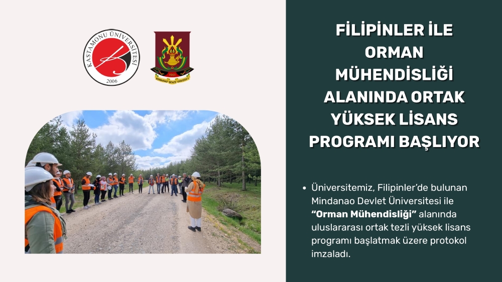 Kastamonu Üniversitesi, küresel ölçekte akademik iş birliklerini güçlendirme hedefi doğrultusunda bir adım daha attı. Üniversitemiz, Filipinler’de bulunan Mindanao Devlet Üniversitesi ile “Orman Mühendisliği” alanında uluslararası ortak tezli yüksek lisans programı başlatmak üzere protokol imzaladı.